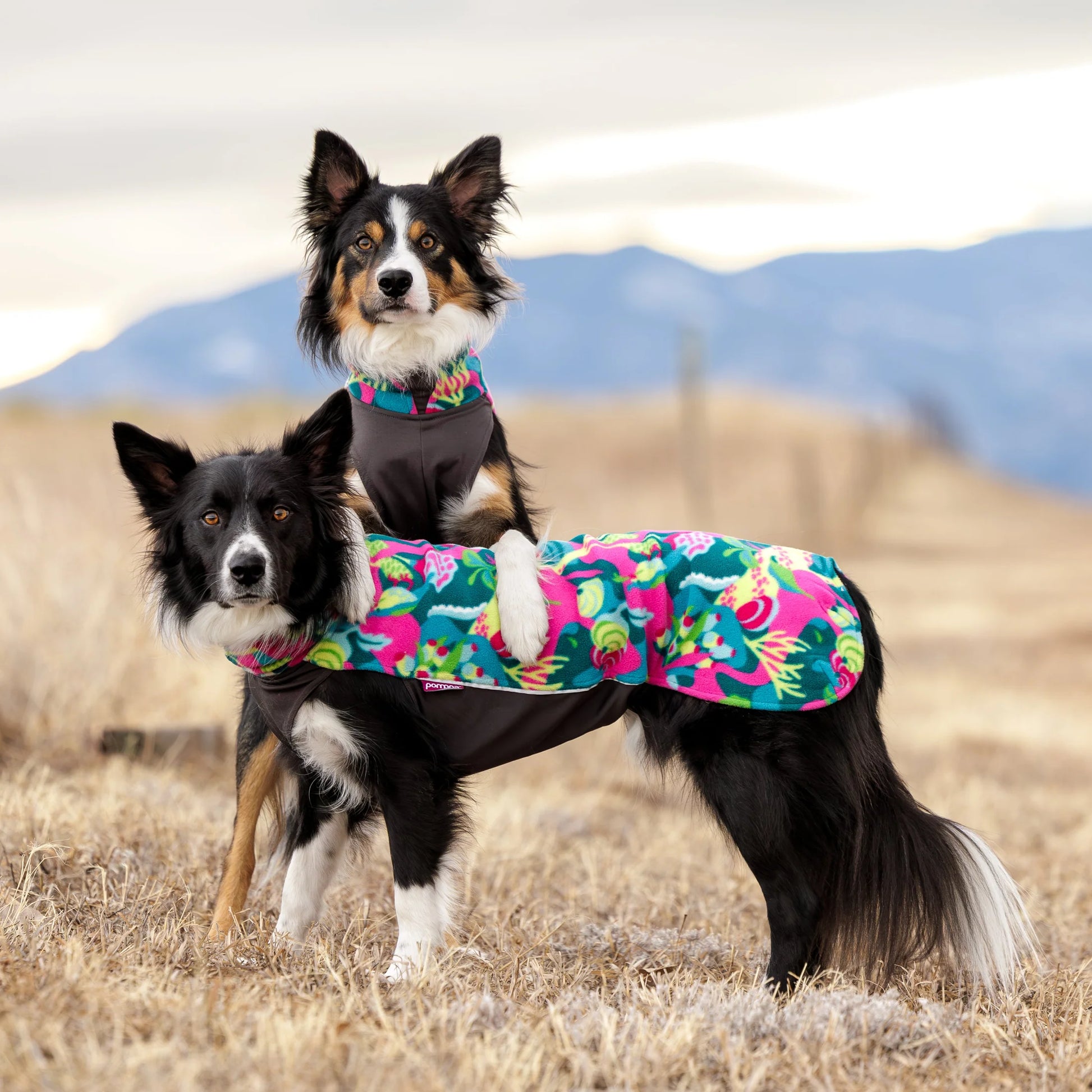 JumppaPomppa är en varm och mångsidig fleecetröja för användning året runt. De mycket elastiska materialen gör tröjan lätt att ta på och bekväm för hunden att bära. JumppaPomppa fungerar både som ett varmt, fristående plagg och som ett mellanlager under en jacka. Den är särskilt populär inom hundsport där det är viktigt att hålla hundens muskler varma under och mellan prestationer.