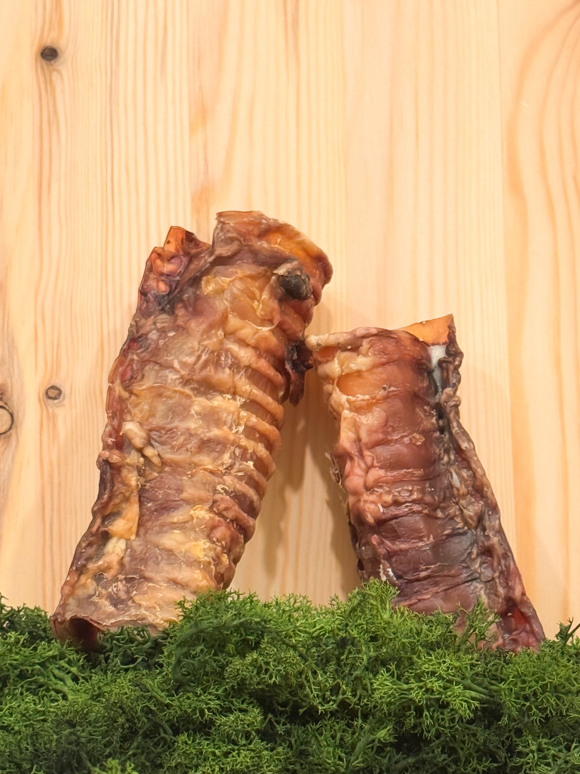 MUSH VAINU Nöt Luftstrupe är ett naturligt och smakrikt hundgodis som passar utmärkt för hundar med starka käkar och stort tuggbehov. Tillverkat av 100 % torkad nötluftstrupe från Finland, erbjuder detta godis en långvarig tuggupplevelse som håller din hund sysselsatt.