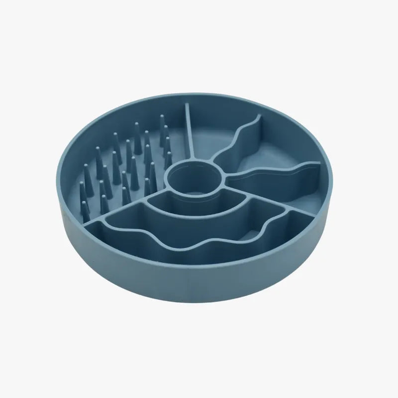 Skålens upphöjningar och fördjupningar gör måltiden lite mer klurig, vilket hjälper ditt husdjur att äta långsammare och ger mental stimulans. Den är gjord av återvunnen plast blandat med naturliga träfibrer, så den känns både trygg och miljösmart. Den halkfria botten håller skålen på plats och den är superenkel att diska, oavsett om du föredrar handdisk eller diskmaskin. Passar alla hundar och katter, oavsett storlek.
