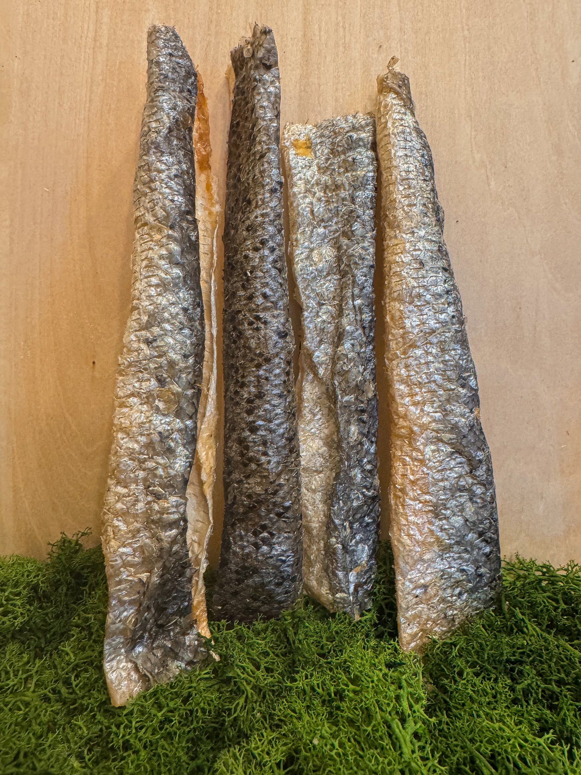 Torkat laxskinn är ett naturligt tugg med seg och något elastisk struktur. Det ger ett jämnt motstånd och passar hundar som föredrar ett lite lättare men smakrikt tugg med medellång tuggtid.