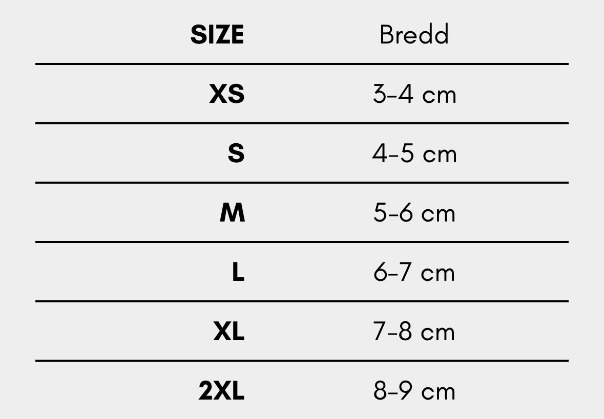 Mät bredden på din hunds tass på den bredaste punkten med ett mätband, mått angivet i CM. Se nedan storlekstabell