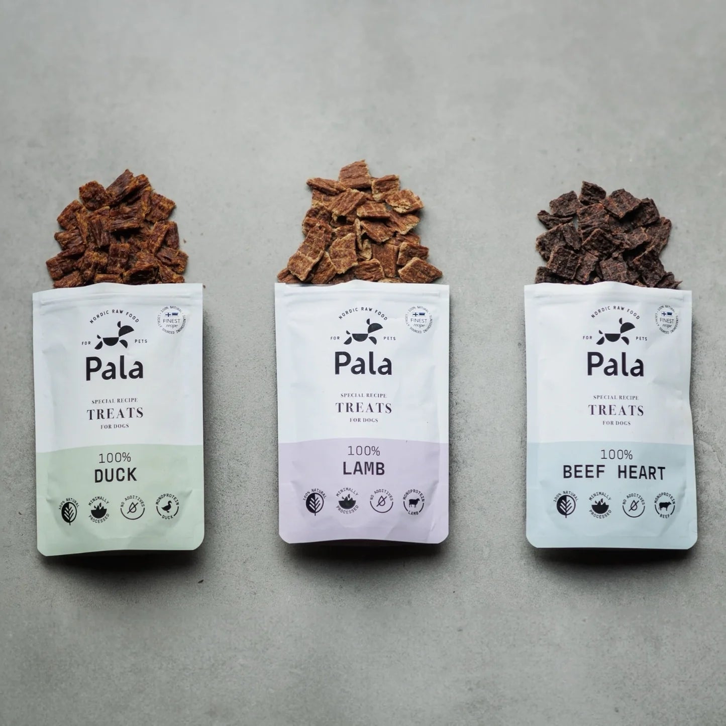 Pala's hundgodis med en enda ingrediens är perfekta för alla husdjur - både hundar och katter älskar dem, oavsett om de är en del av deras måltider eller hälsosamma snacks!