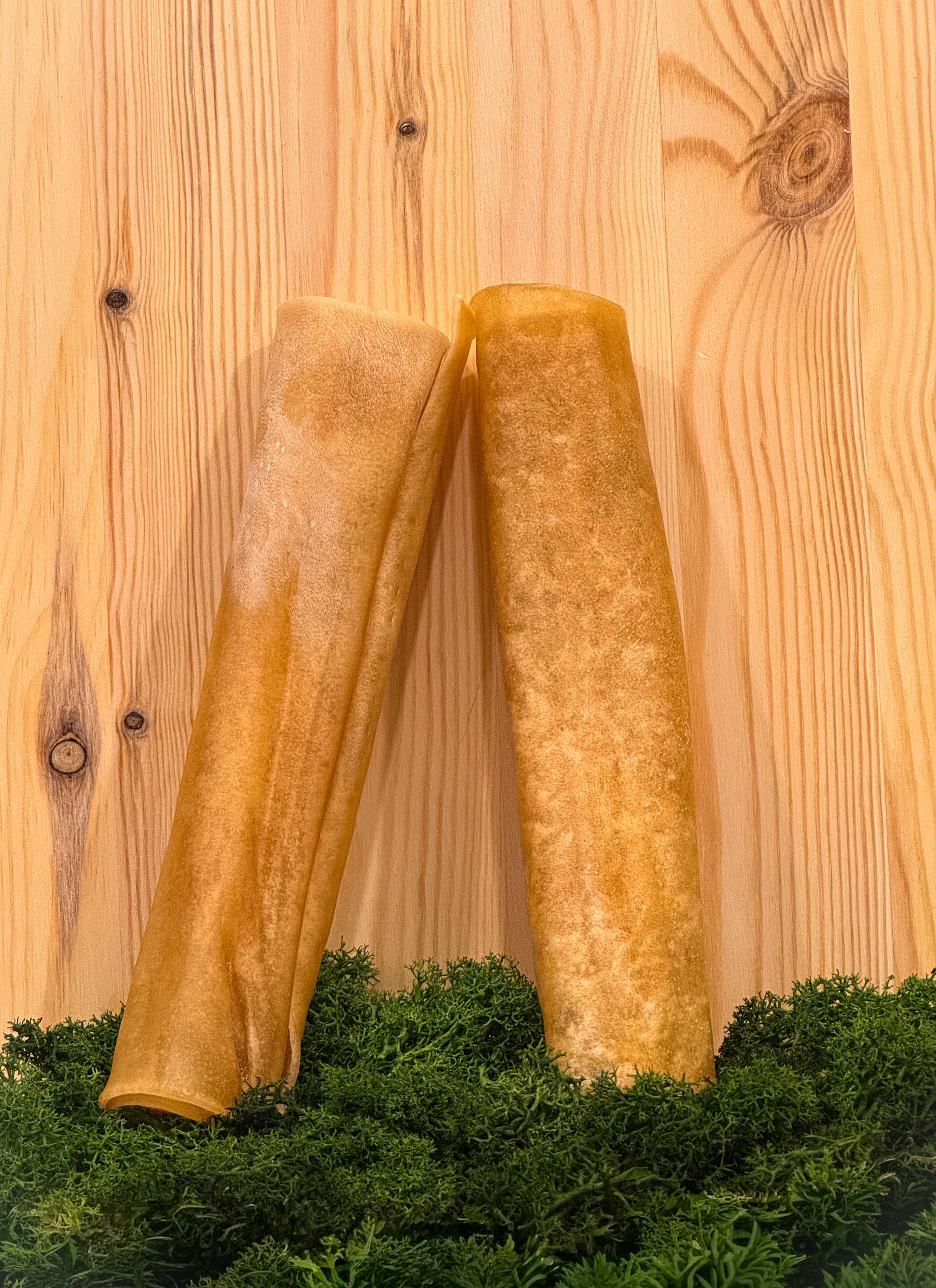 Tuggrullarna består av 100 % finsk kronhort, helt utan tillsatta färgämnen, konserveringsmedel, smakämnen eller andra tillsatser. De innehåller inte heller några antibiotikarester. Huden är naturligt mager och bevarar en autentisk viltsmak som hundar älskar.